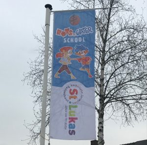Tijdens de Rots en Water week op Katholieke Jenaplan Basisschool St. Lukas in Drachten wapperde een heuse Rots en Water vlag. Deze vlag is in samenwerking met het Rots en Water Instituut gerealiseerd en we zijn er trots op!
