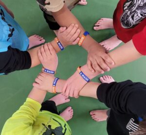 Het mooie oranje blauw gekleurde siliconen polsbandje met de tekst ‘Rots en Water’ herinnert de leerlingen op een leuke manier aan de belangrijke R&W-lessen en vergroot daarmee de transfer naar het dagelijkse (school)leven. De bandjes hebben een omtrek van 180mm. Leuk om bij de laatste les uit te reiken!